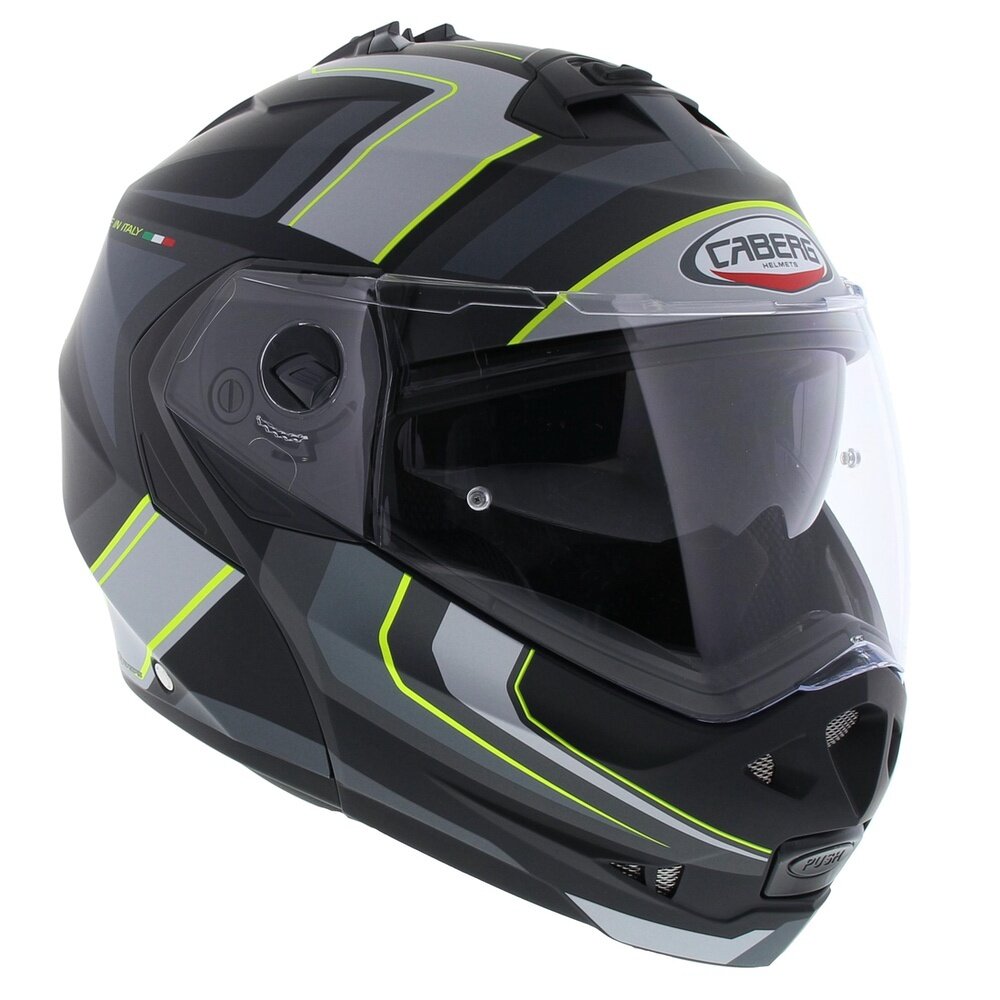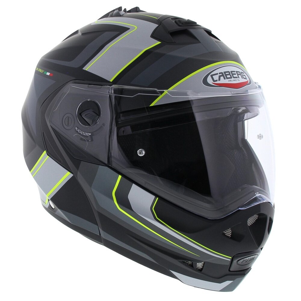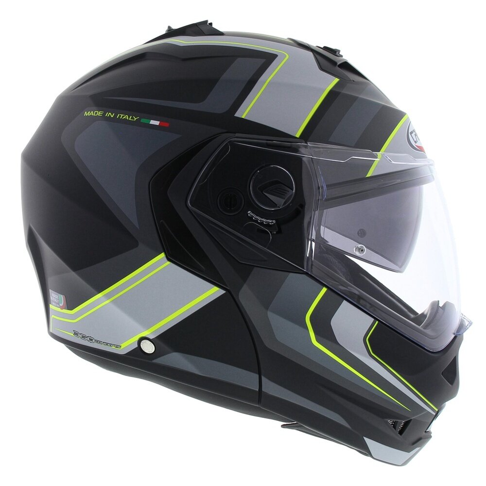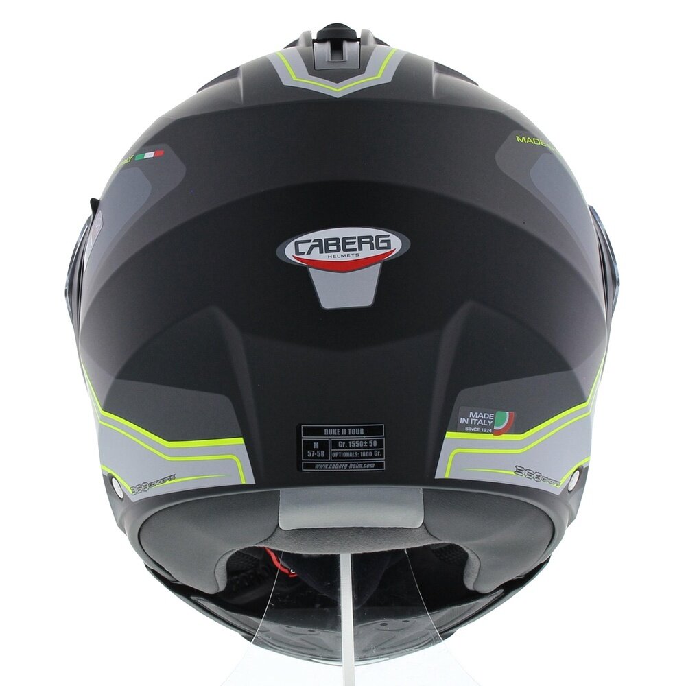 Duke II is equipped with the exclusive Double Visor Tech system that, including a sunvisor that can be operated with just one hand. The Duke II is also equipped with a pinlock visor in the box, reducing the chance of the visor fogging up. Ventilation is guaranteed by two easy to use vents, one positioned on the chin guard and one on top of the shell. The lining is completely removable and washable. Thanks to the reduced dimensions of the helmet, the weight of DUKE II is only 1550 gr +/- 50gr.