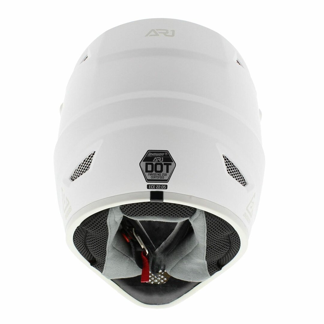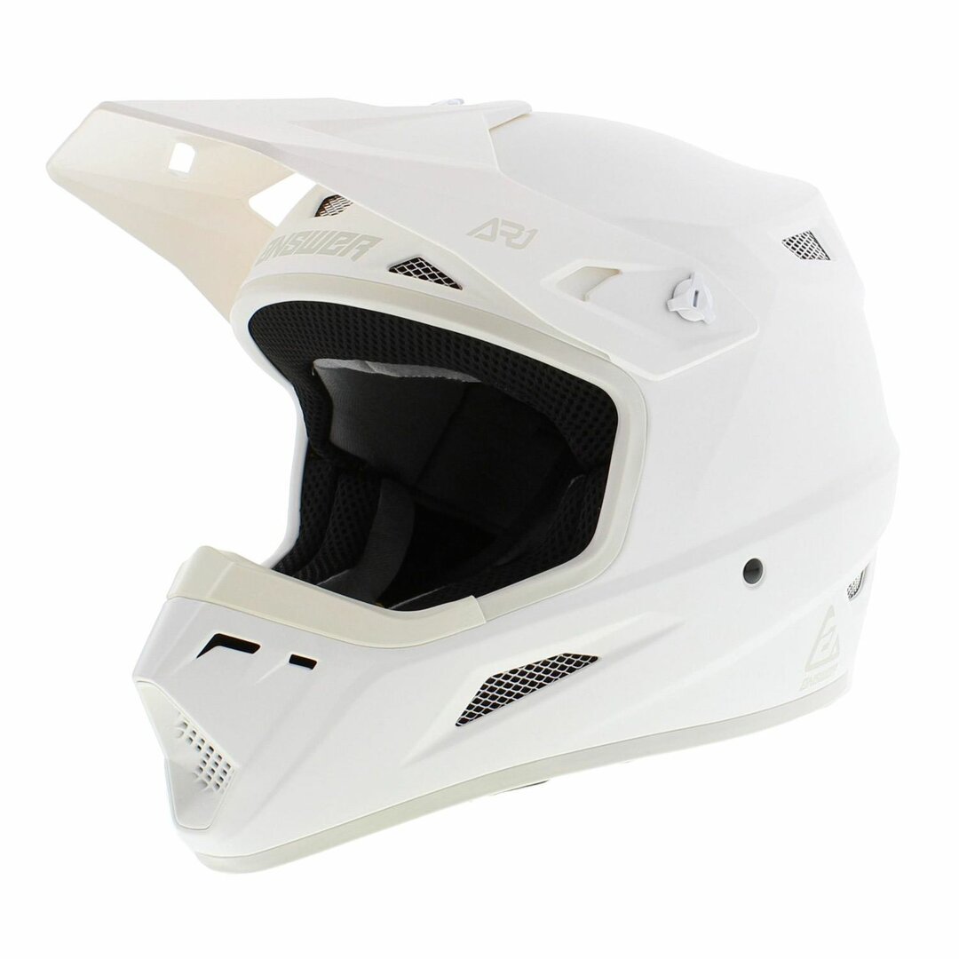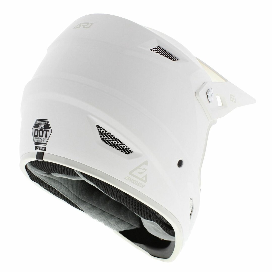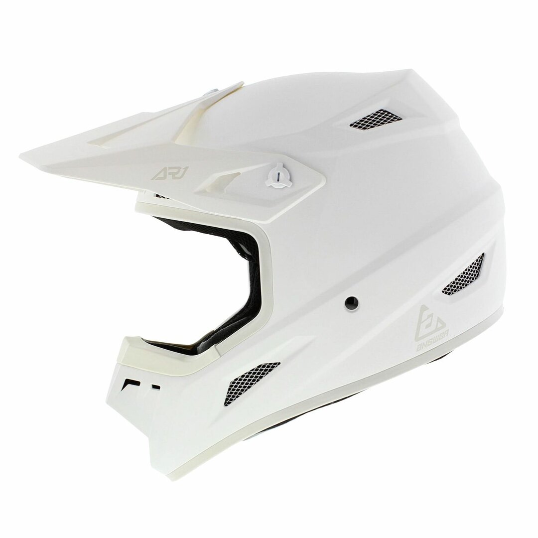 The AR1 is an excellent MX helmet designed for entry-level riders. The Answer AR1 offers riders competition-level quality, functionality and aggresive prints at an affordable price. Get the latest prints from Helmetdiscounter now! The combination of an ABS outer shell together with the double density EPS layer ensures an incredibly strong and safe helmet. The AR1 has 14 ventilation openings for optimal comfort inside the helmet under all conditions. With the redesigned field of view and an updated eye port, the AR1 offers optiomal vision and is suitable for any set of motocross goggles. The helmet has an adjustable peak and of course a comfort liner that can be completely removed and cleaned, perfect for any off-road ride! Specifications: - ABS helmet shell - Excellent fit - Removable and washable lining - Double D-ring closure - Weight 1500 grams (+/- 50 grams) - Extra screw set included in the box - Excellent ventilation in 14 positions in the helmet - UV coated outer shell. - ECE-22.05 and DOT homologation - Available in sizes YS 47-48 cm / YM 49-50 cm / YL 51-52 cm Now the last pieces with an extra discount, be quick before they're gone!