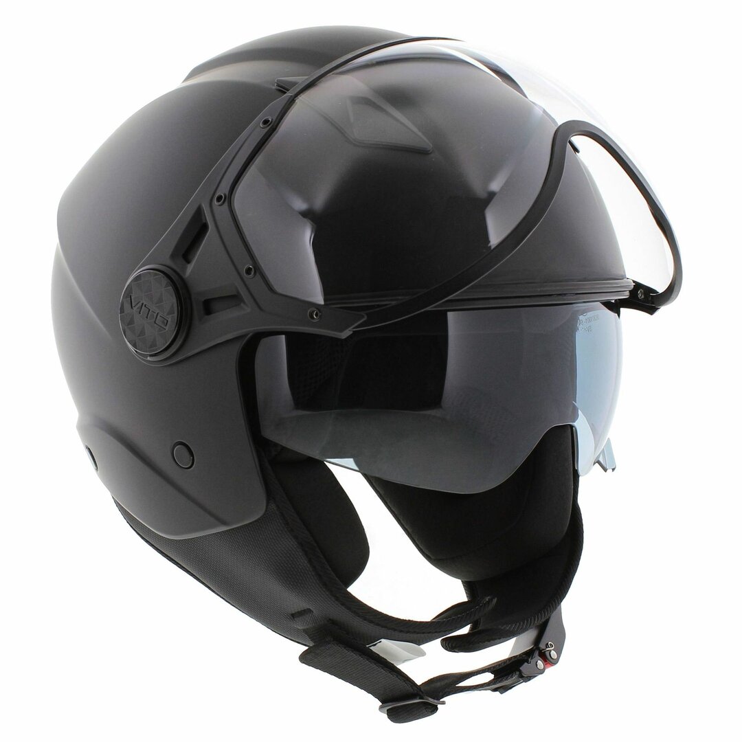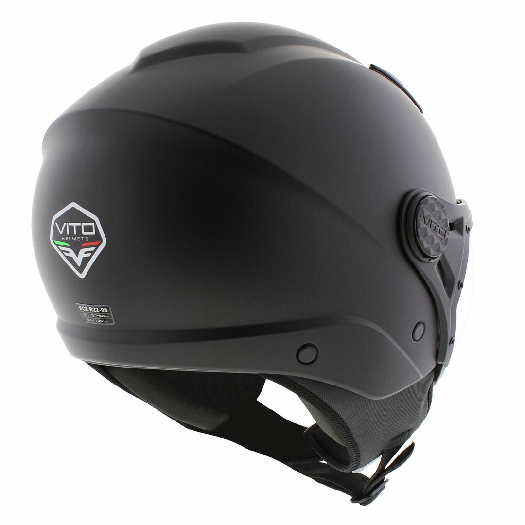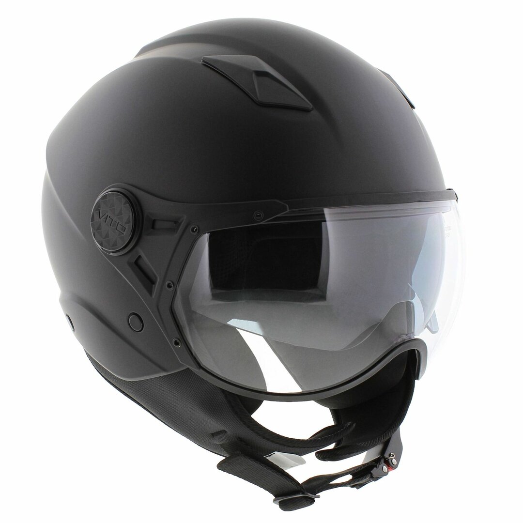 This brand new Vito Jet Lavori is the latest model from Vito Helmets. This beautiful jet helmet is based on the extremely popular Vito Moda jet helmet, perhaps the most popular scooter helmet on the market today. The Lavori is very comfortable thanks to its excellent fit and low weight. Thanks to its beautiful trendy design and finish, it gives a premium look and feel. The helmet is equipped with a modern short clear visor and an internal sun visor. This makes this helmet perfect for all conditions.